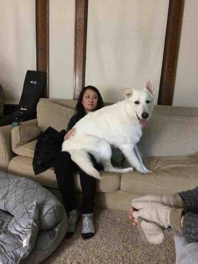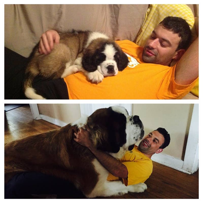 你家裡的狗狗也是從小養到大的嗎?牠是不是也跟這些照片裡的狗狗一樣,非常愛躺在你的身體上呢?