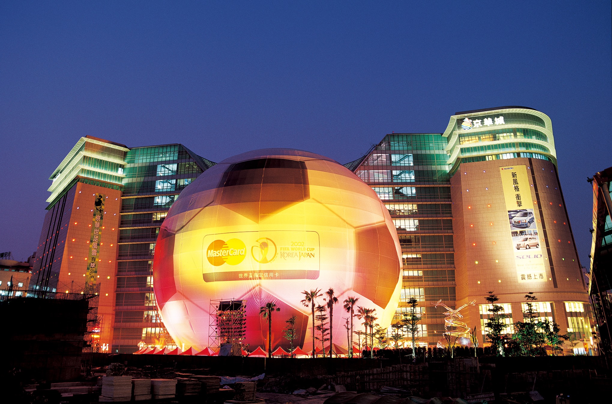 ▼最令人印象深刻的是「2002年世足賽」時,京華城運用了直徑58公尺的球體,將其包裝成足球造型,引起國際注意。