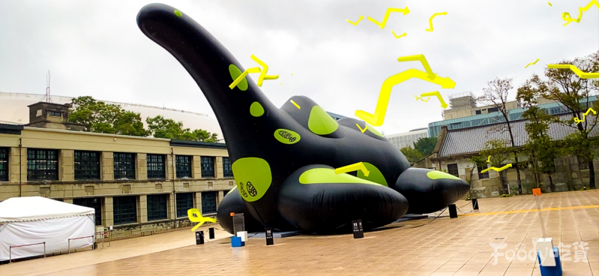 2019年11月19日每過一段時間,台北松菸文創園區就會出現特別的展覽或裝置藝術,而這次松菸廣場前出現一座高達12米的巨型蛇頸龍,獨特又帶點萌萌的造型,吸引不少民眾駐足欣賞、拍照留念!