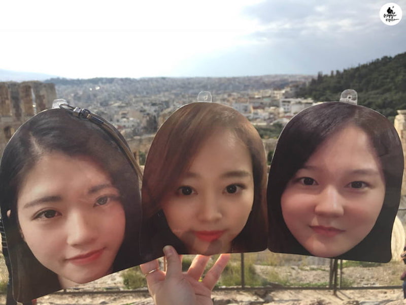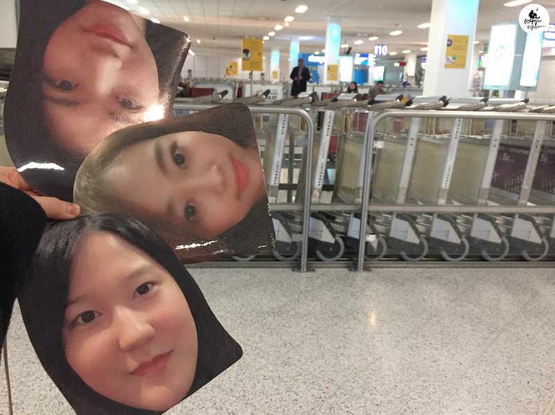 ▼本來說好的歐洲行…3位閨蜜卻因為臨時有事,紛紛取消行程,獨自出發的Soo Yeon就印了3位閨蜜的大頭相片,一起踏上旅程!