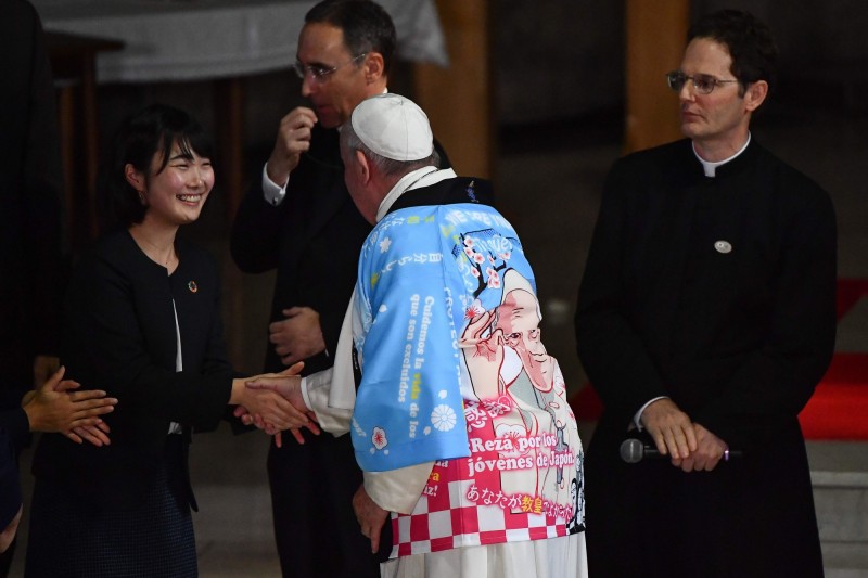 太親民啦!天主教教宗方濟各訪日大受歡迎,,參加青年會談還獲得教徒送上一件印有「動漫風方濟各」的日式法被!除了日語,還有許多西語文字,方濟各收到後也當場穿上,向全球展現超親民作風!