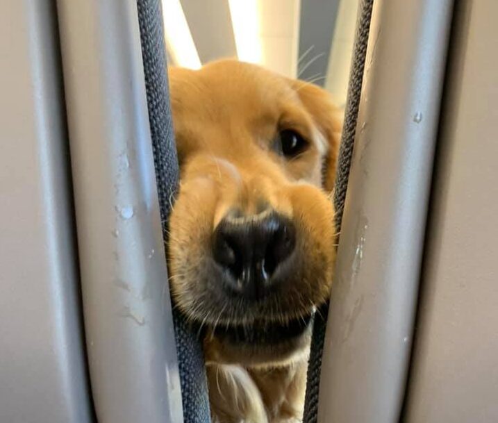 2019年11月27日倫敦女孩Ursula Daphne Aitchison養了2隻可愛的黃金,一隻叫Huxley,另一隻叫Hugo。Aitchison經常帶2隻狗狗出門,狗狗們不怕生,哪怕面對陌生人也非常友好。那天Aitchison帶Huxley搭火車,無聊的Huxley竟然拋下主人,跟別的乘客玩了起來。