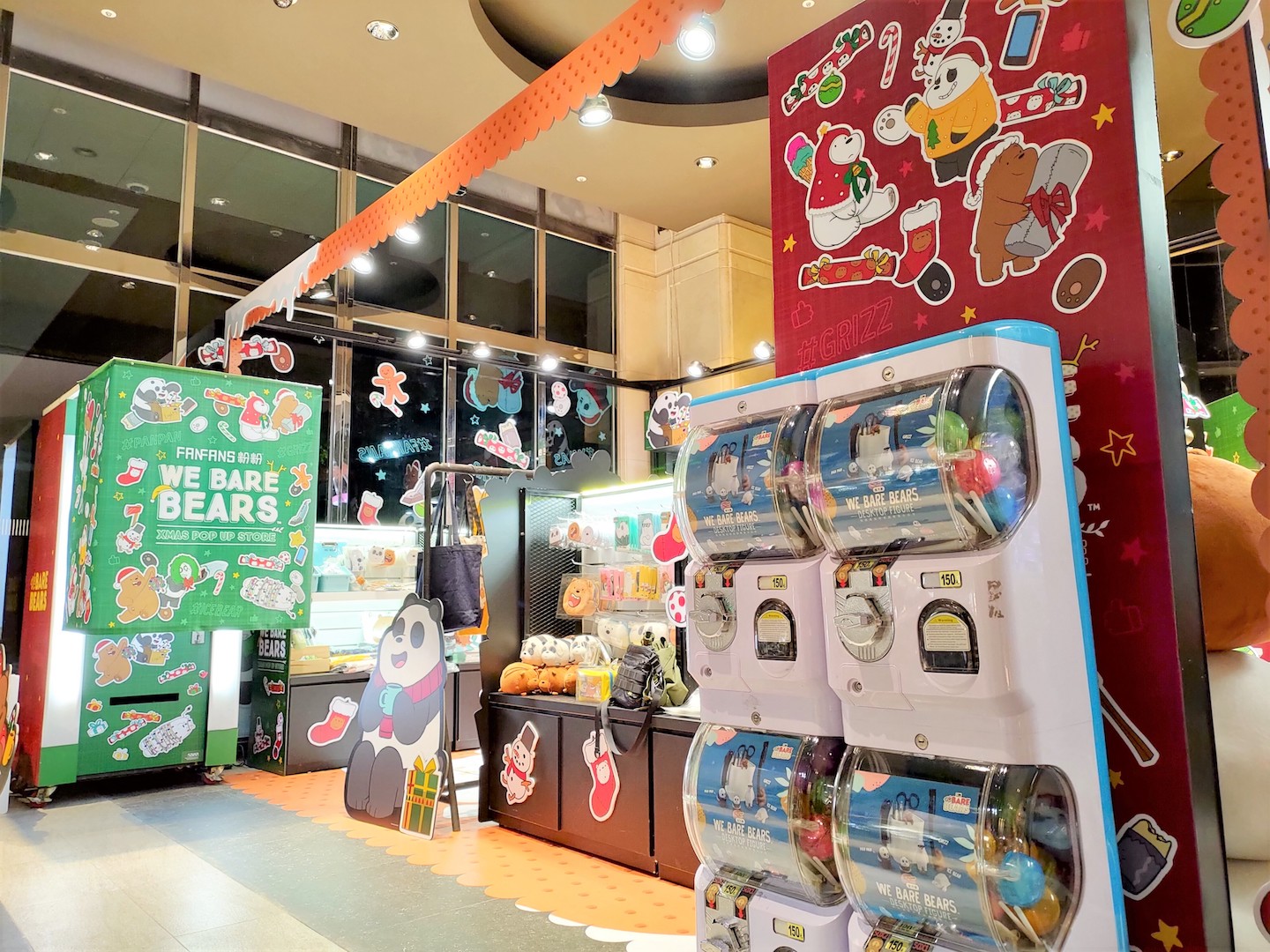 ▼為了迎接可愛的聖誕熊熊們到來,特別將快閃店佈置成薑餅小屋,並讓大大、胖達和阿極穿上超可愛的聖誕裝來跟大家一起過節,並同時推出節慶限定熊熊拍貼機,以及快閃店才有的原版扭蛋機台都是必玩新品!