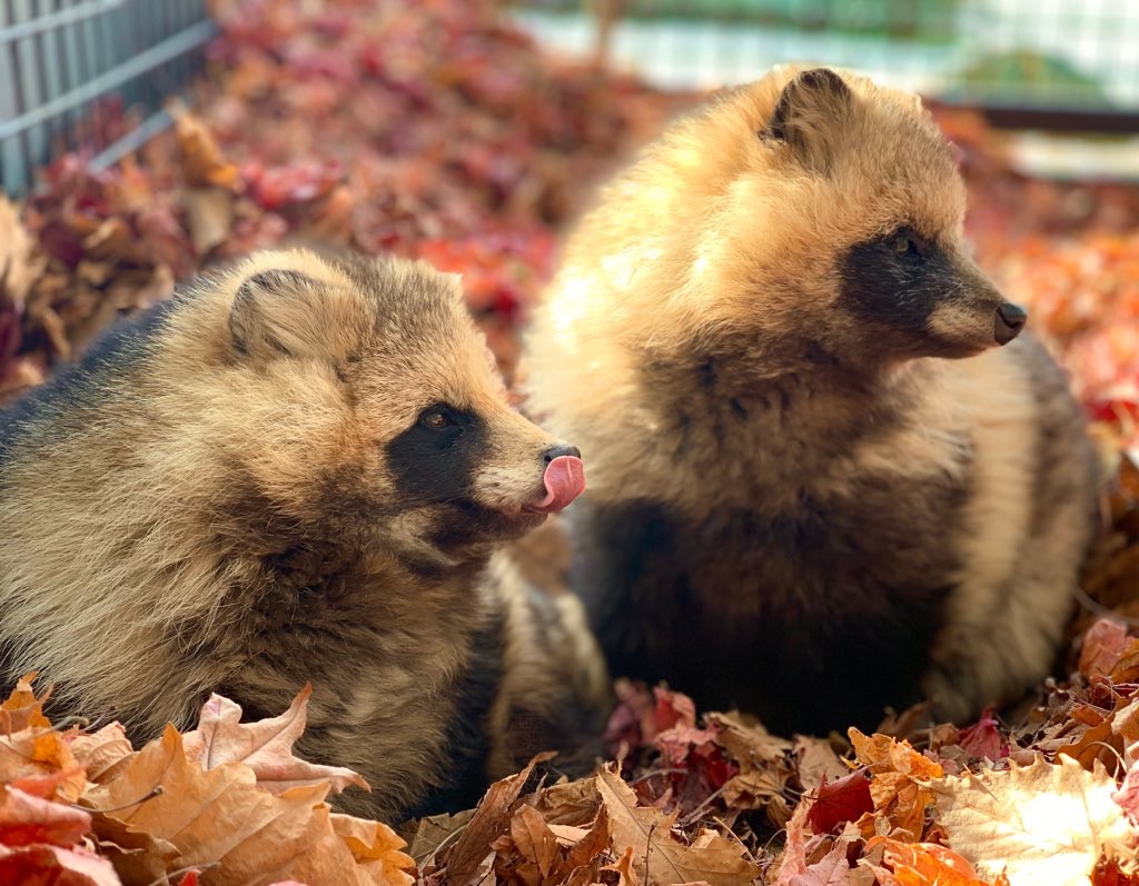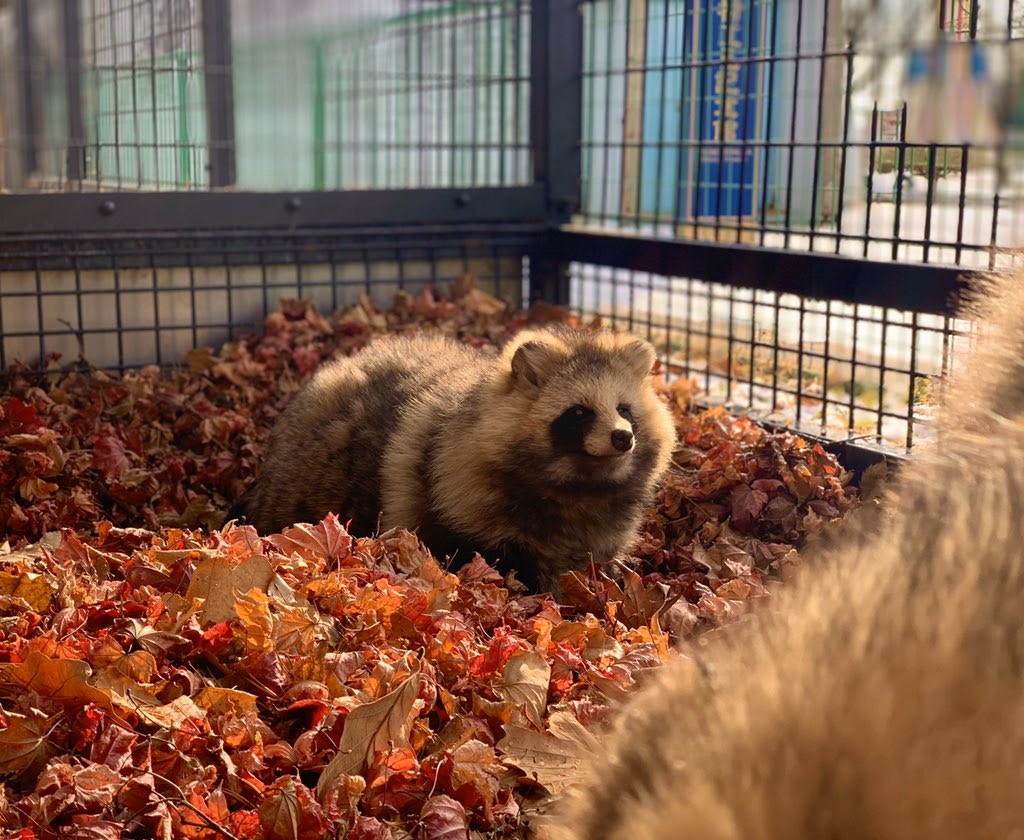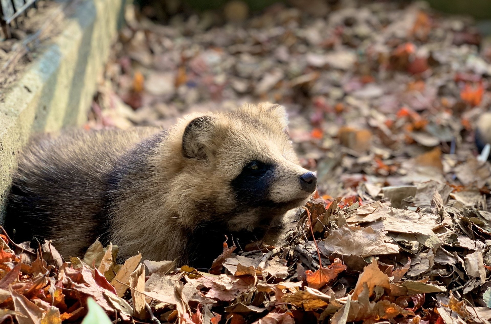 ▼浣熊們沒有辜負工作人員的心意,有時躺在紅葉堆中休息,有時在其中玩耍,非常有趣。