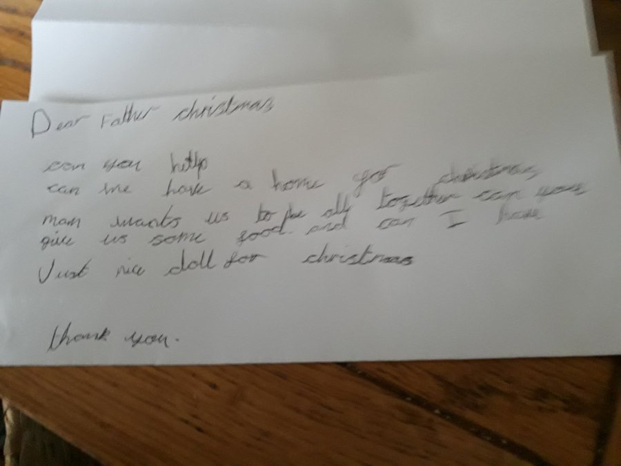 2019年11月29日聖誕節是一個充滿歡樂的溫馨節日。每年到了這個時候,很多小朋友都會給聖誕老人寫信,訴說自己純真的願望。英國利物浦一名7歲女孩就給聖誕老人寫了一封信,但她想要的不是昂貴玩具,而是希望有一個能跟家人一起過節的家。