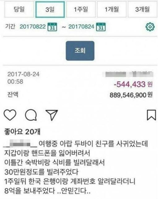 ▼不久後,韓國男檢查戶頭發現,裡面竟然多了8億韓元!對方整整還了2750倍的金額!