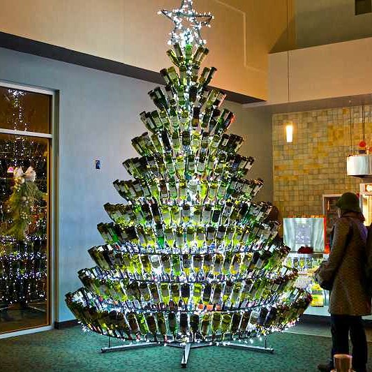 ▼不過近年來環保意識抬頭,比起到野外砍伐真正的聖誕樹回家,人們更傾向利用其他替代品來做出聖誕樹,其中「空酒瓶」就是非常適合的材料!