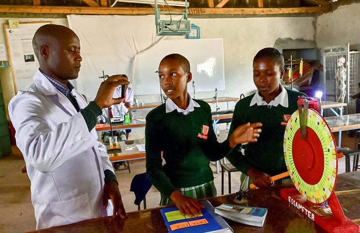 37-year-old Peter Tabichi donates 80% of his salary to poor schools in Kenya. He has built several classrooms. He aims to provide free water, WiFi and modern computer labs for schools.