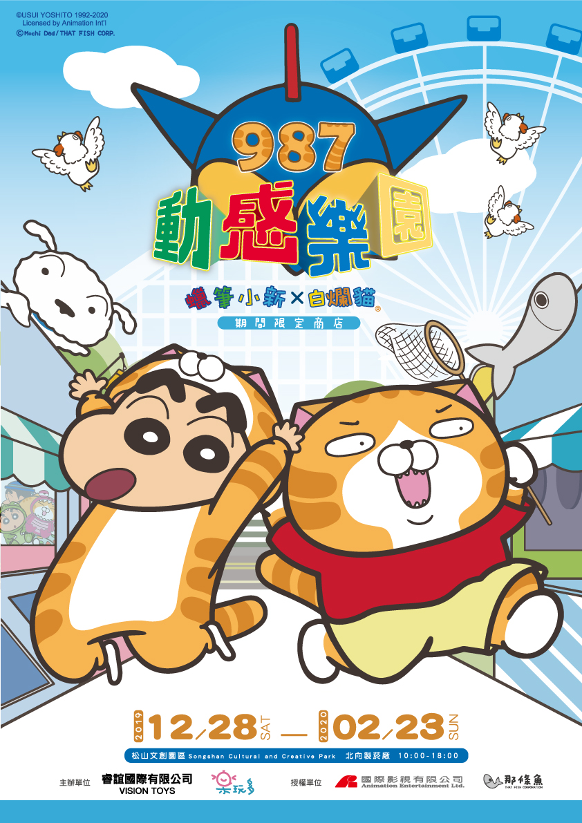 2019年12月05日粉絲準備到台北朝聖囉!最成熟的五歲幼稚園小孩蠟筆小新,跟最「北爛」的人氣貼圖角色「白爛貓」,竟然聯手出動,即將在年底帶來最無厘頭的快閃店「987動感樂園期間限定店」啦!重點是這次整個動感樂園都是免費入園,一定要衝一波~
