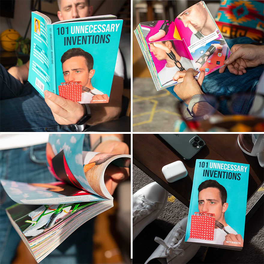 2019年12月05日在一般人的心目中,發明家是一個非常偉大的行業,他們總是致力於開發出各種能夠改善人類生活的新產品。不過在這個世界上,其實也有著許多專門發明「無用商品」的發明家,各種沒有必要的發明讓人非常懷疑他們到底在想些什麼!這名國外有名的 YouTuber 馬蒂(Matty Benedetto),就經常在頻道中發表自己的各種無用發明,如今他甚至還出版了一本書,集結了各種他的創意結晶,保障會讓大家看傻眼!