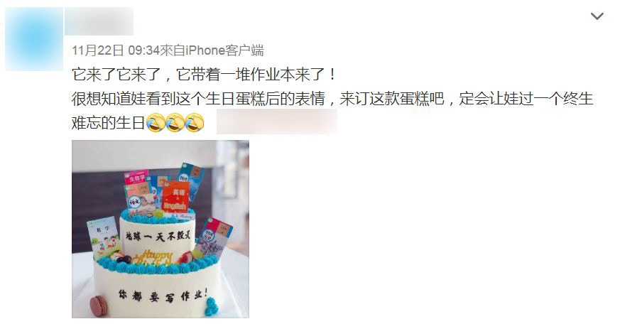 ▼之前也有網友給兒子訂過類似的「功課蛋糕」,但兒子非常淡定,還搞笑說自己的生日願望就是要把作業都吃掉!