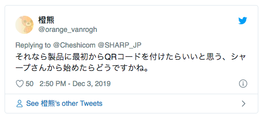 ▼「既然這樣直接廠家一開始都附上QR code就好了。從SHARP開始如何呢?」