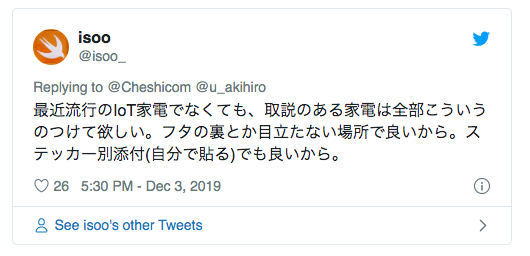 ▼「就算不是最近流行的IoT家電,希望所有需要說明書的家電上都能有這個。在標籤背面那種不起眼的地方也可以,或者另外附讓我們自己貼QR code的貼紙也好。」