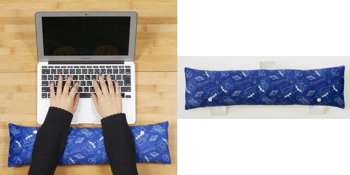 ▼隨附的長型靠枕非常精緻,兩面的圖案不一樣,其中一面是仿鍵盤的設計,另一面全都是三眼怪。快讓三眼怪來拯救你的手臂和手肘吧。