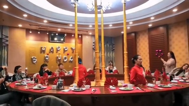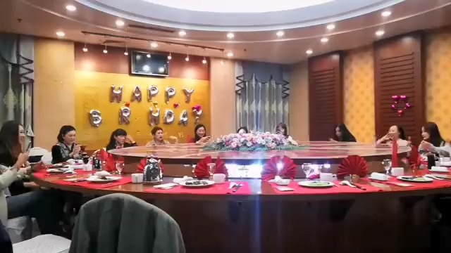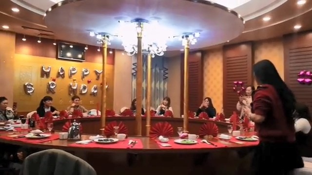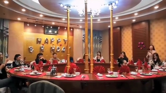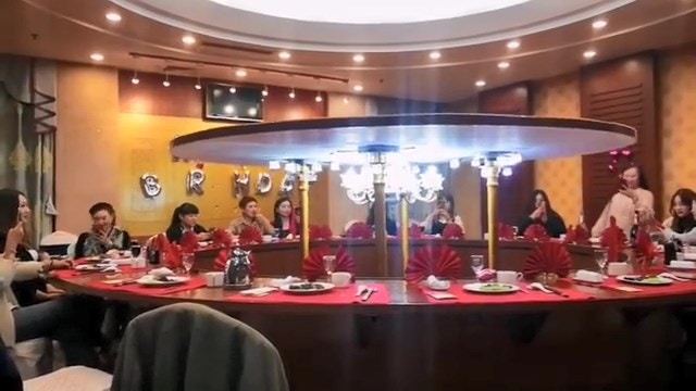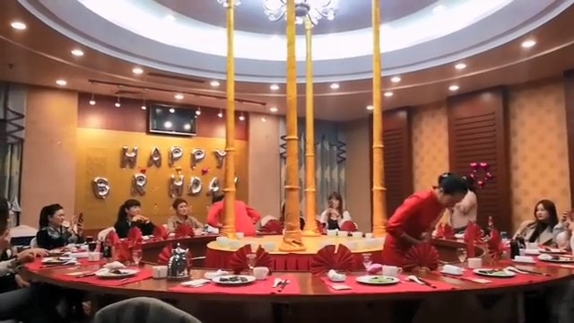 ▼這間飯店位於大陸山東省煙台市。一位女士生日這天和親友到這裡聚餐,只見圓桌中央緩緩升起,同時生日歌也響了起來。