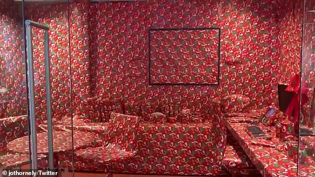 2019年12月07日你身邊有愛惡作劇的朋友嗎?聖誕節就要到來,澳洲雪梨的一位女播客決定給老闆一份特別的禮物。她用禮物包裝紙將老闆的辦公室整個包了起來。桌子、椅子、電腦等等都沒有放過,整個辦公室都變得紅彤彤的,看起來很魔幻。
