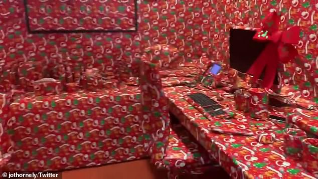 送老闆最狂的聖誕禮物! 員工「包裝紙包整間辦公室」連桌上鉛筆都沒放過