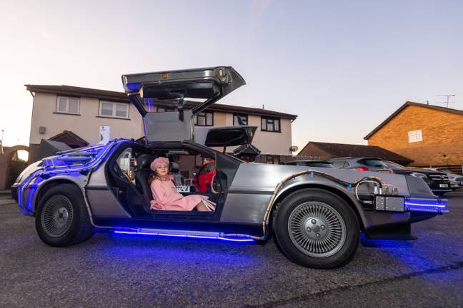 ▼James的8歲的女兒Daisy說:「這台車很酷!有一次我們出門的時候看到了另外一台『時光車』,但我們的車比較好,那台車只改造了外觀。我們開車路過的時候,其他司機會按喇叭歡呼,我覺得超酷。」