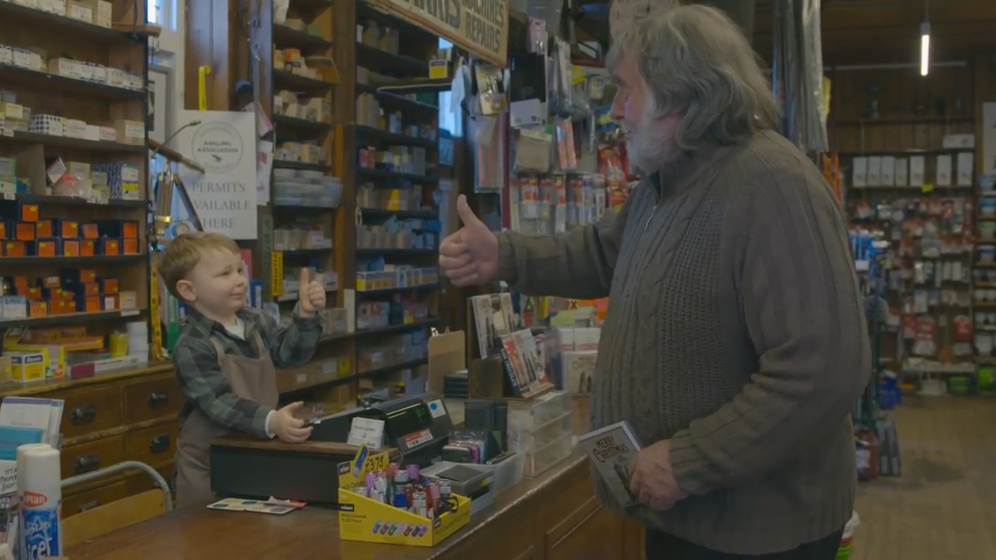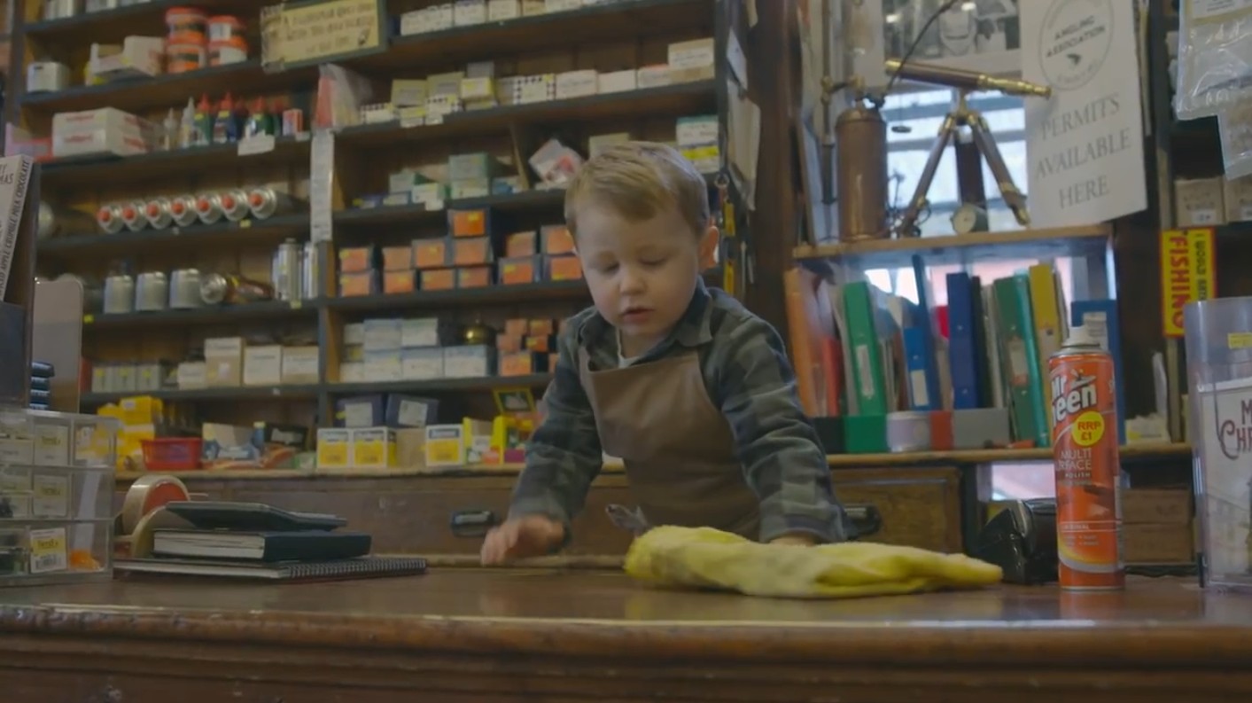▼原來這支廣告,是Hafod Hardware 五金行的老闆 Tom Jones 和兩歲的兒子 Arthur 共同出演的!因為兒子也經常回到店裡幫忙,因此他想出了這個仿佛「穿越時空」的表達方式,希望大家更重視在地小店的經營模式,因為比起大型商場,這些小店更注重人與人之間的互動和溫度!