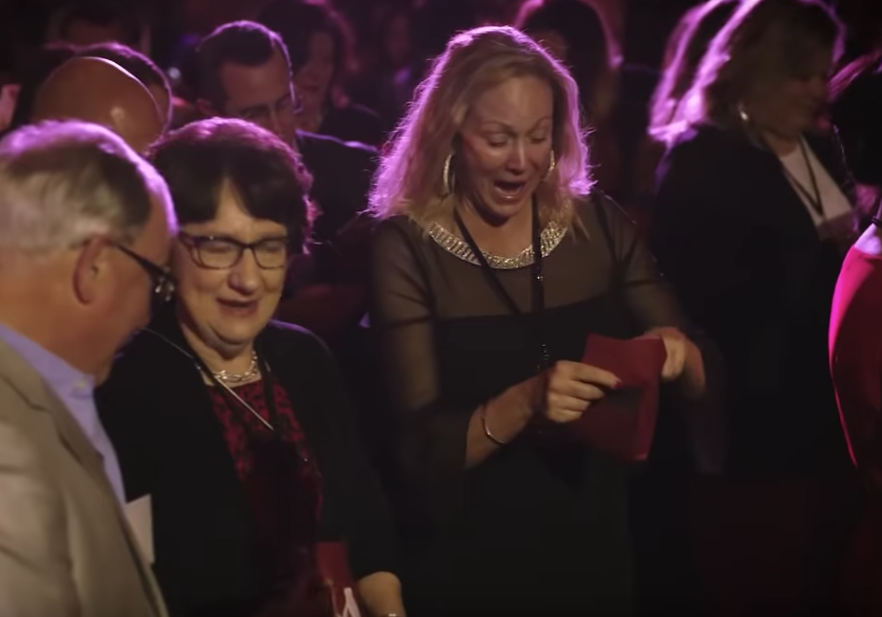▼接著台下員工就可以開事先發的紅色信封,許多人看到裡面寫著分到的獎金數時,瞬間就忍不住大喊!還有人興奮表示貸款什麼的都可以一次繳清了!