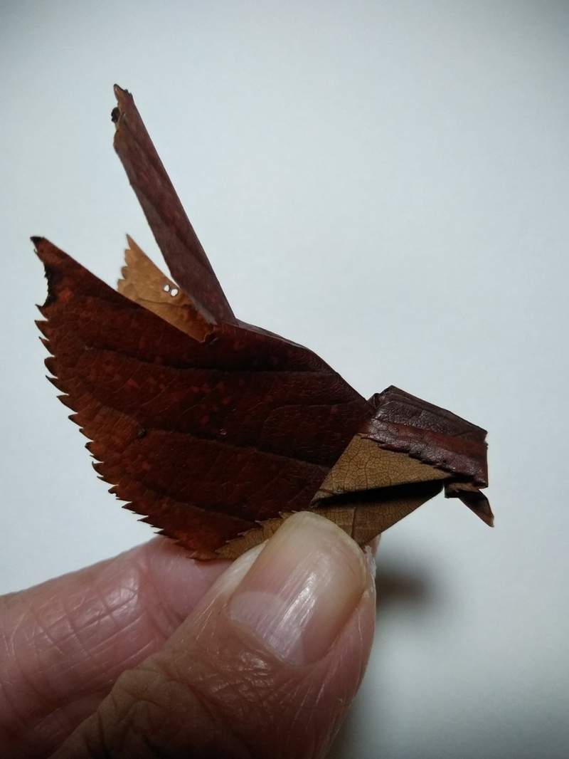 ▼無法想像這樣栩栩如生的小鳥,竟然是用枯葉摺出來的!