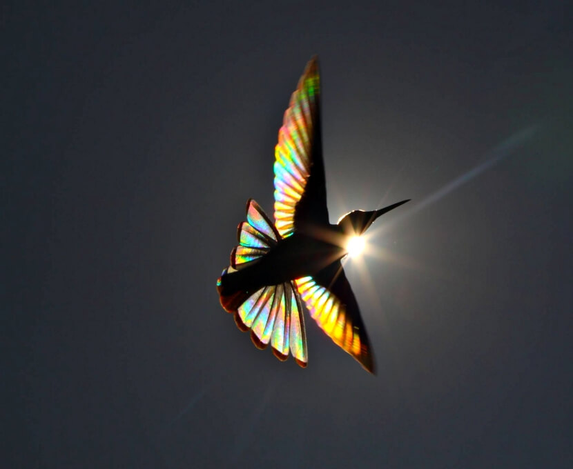 ▼幾年前,Spencer拍攝了一組蜂鳥照片,至今這組照片都在網路上熱傳。他拍下一隻蜂鳥在陽光下飛舞的英姿。光線穿透蜂鳥的羽毛,將翅膀變成絢麗的彩虹色。這組照片沒有經過任何後製和修飾,是百分百真實的。