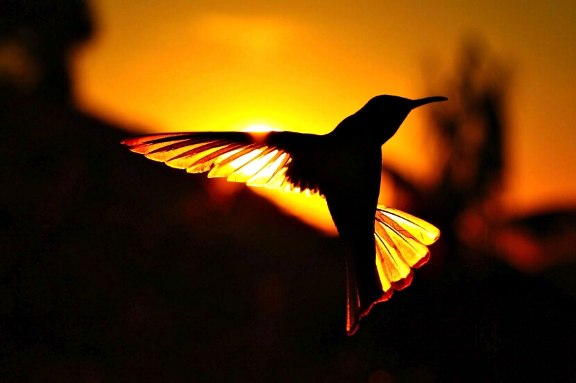 ▼蜂鳥的飛行速度可以達到時速90公里,肉眼甚至無法看到飛行的蜂鳥的翅膀。Spencer使用Canon EOS 650D相機,18-135mm的鏡頭和1/3200s的快門,紀錄下了陽光下蜂鳥飛行的模樣。