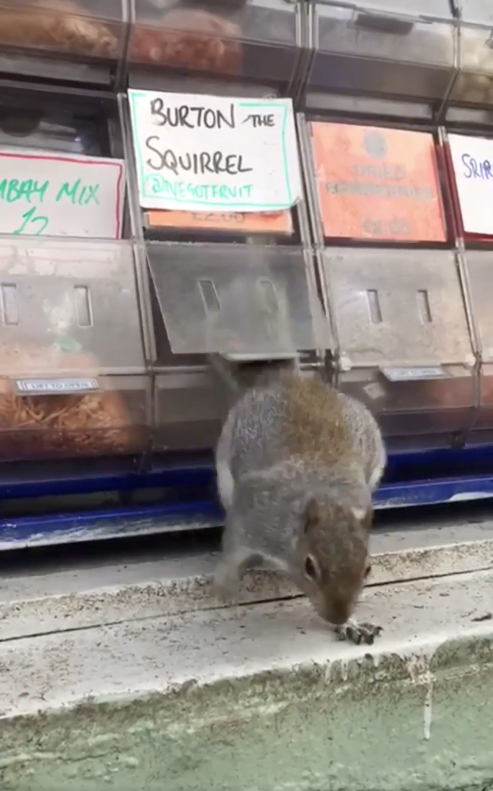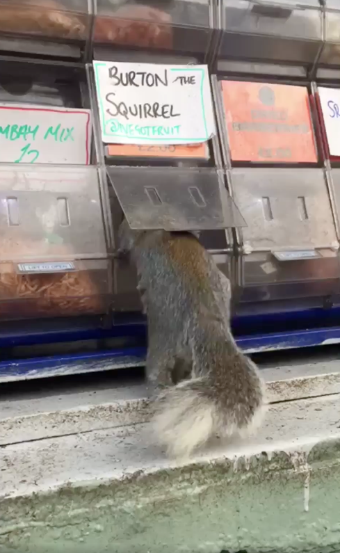 開店最怕遇到動物狂吃狂擾亂店裡的東西!英國一家食品供應店就遇到了這樣的問題,小偷就是一隻松鼠!自從松鼠來偷吃後,堅果展示櫃就一直有很多堅果消失不見,讓店家不得不想辦法來解決問題。