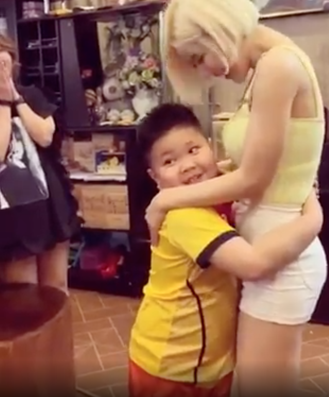 ▼但是⋯黃色衣服的弟弟卻給了女神完全不一樣的反應!他竟然超主動地抱緊DJ Soda!
