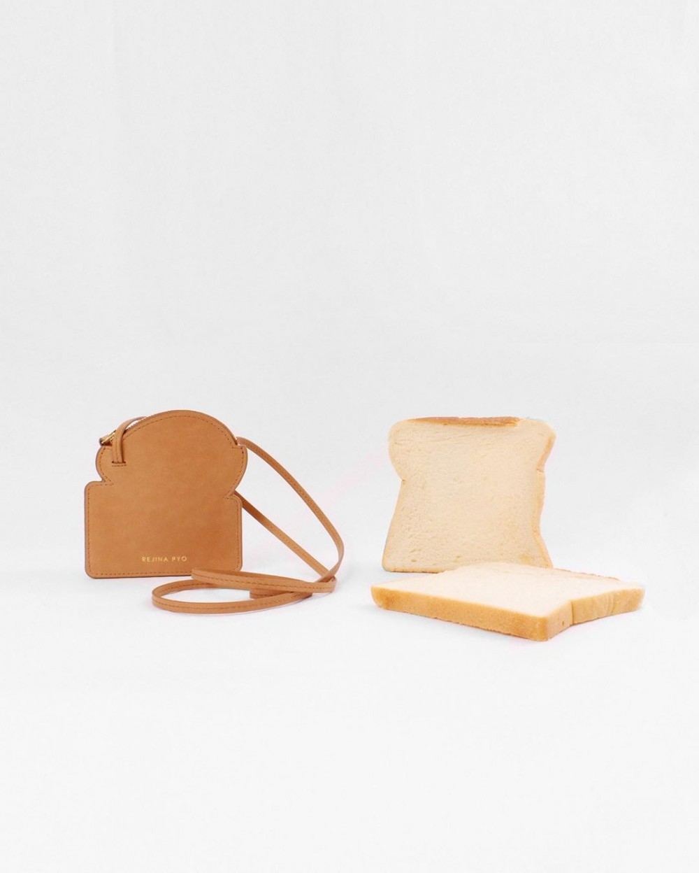 ▼「一片吐司」大小的側背包能裝的東西太少,Rejina Pyo也有更能裝的「厚片吐司」包包。包包是牛皮做的,足夠堅韌,也很有質感。