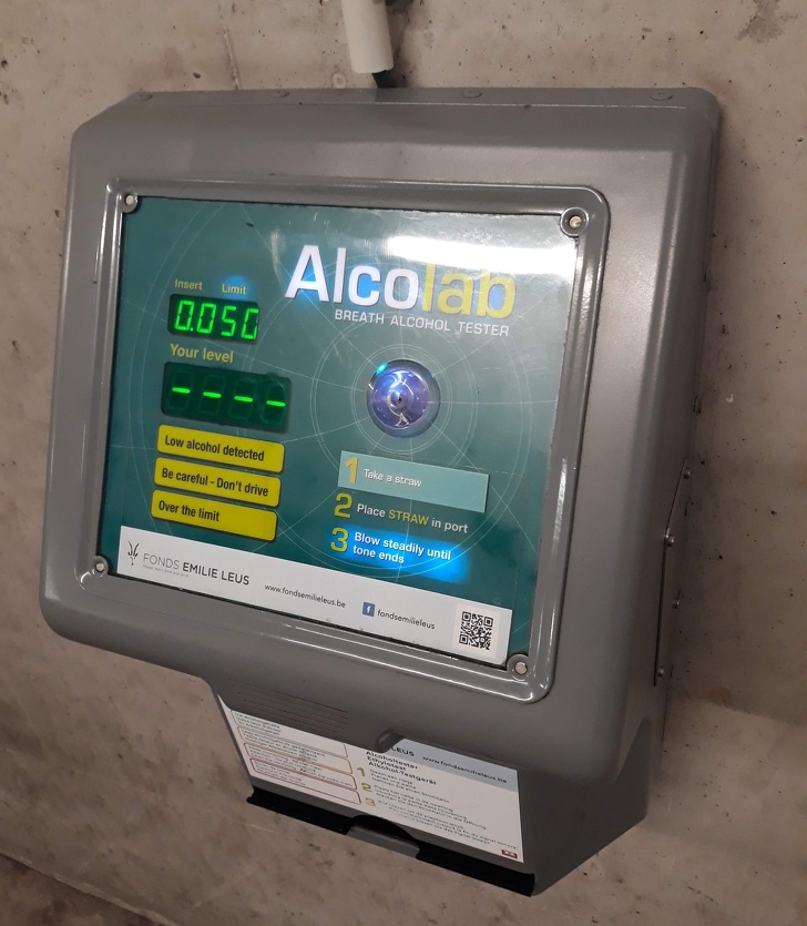 ▼停車場中有呼吸式酒精測定儀,開車前自己測一下,不要酒駕。