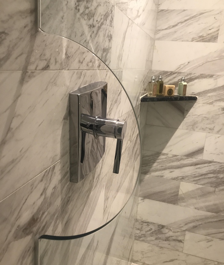 ▼浴室的玻璃門上有一個小缺口,可以輕鬆開門。