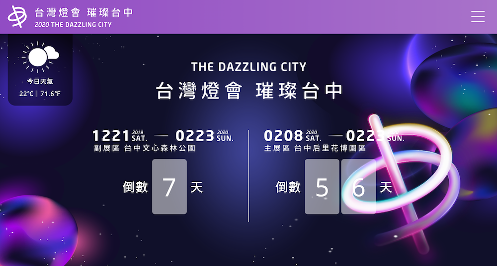 2019年12月14日年度的台灣燈會又回到台中囉!這次燈會時間延長舉辦,展期共有65天,讓大家可以從聖誕一路慶祝到元宵節。除了夜晚的燈會光景外,白天也有許多值得拍照的景緻,一定要抽時間去看看!