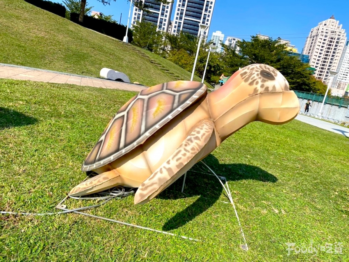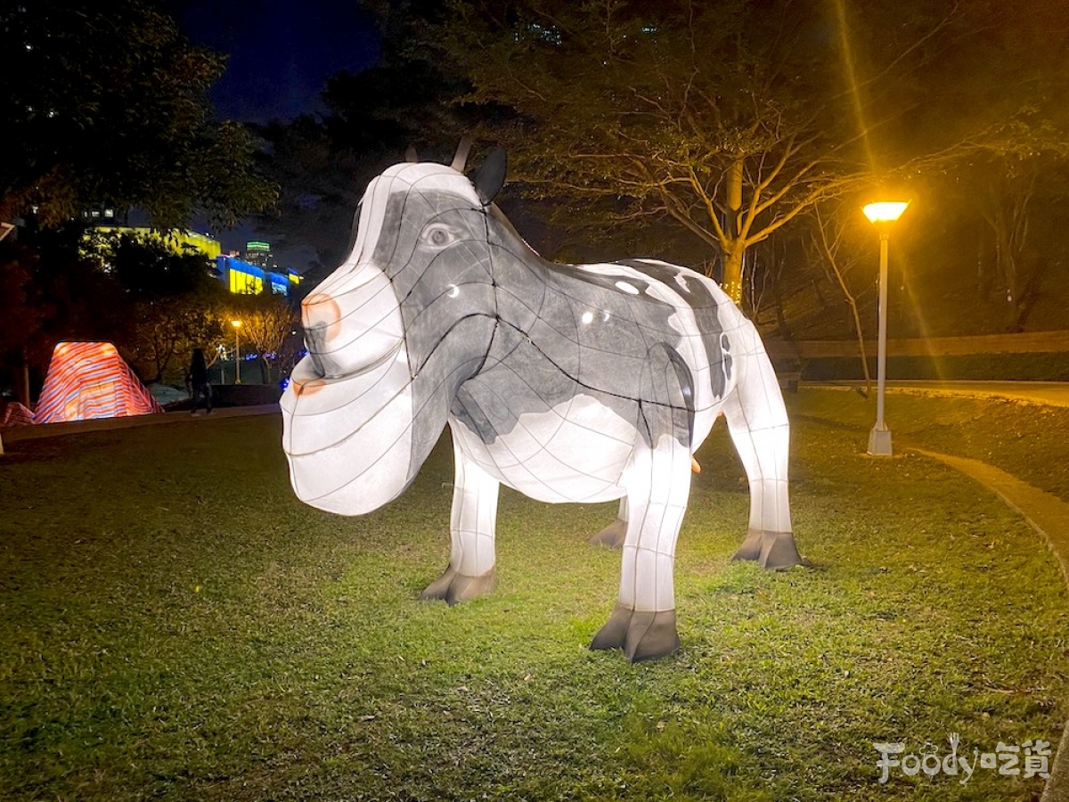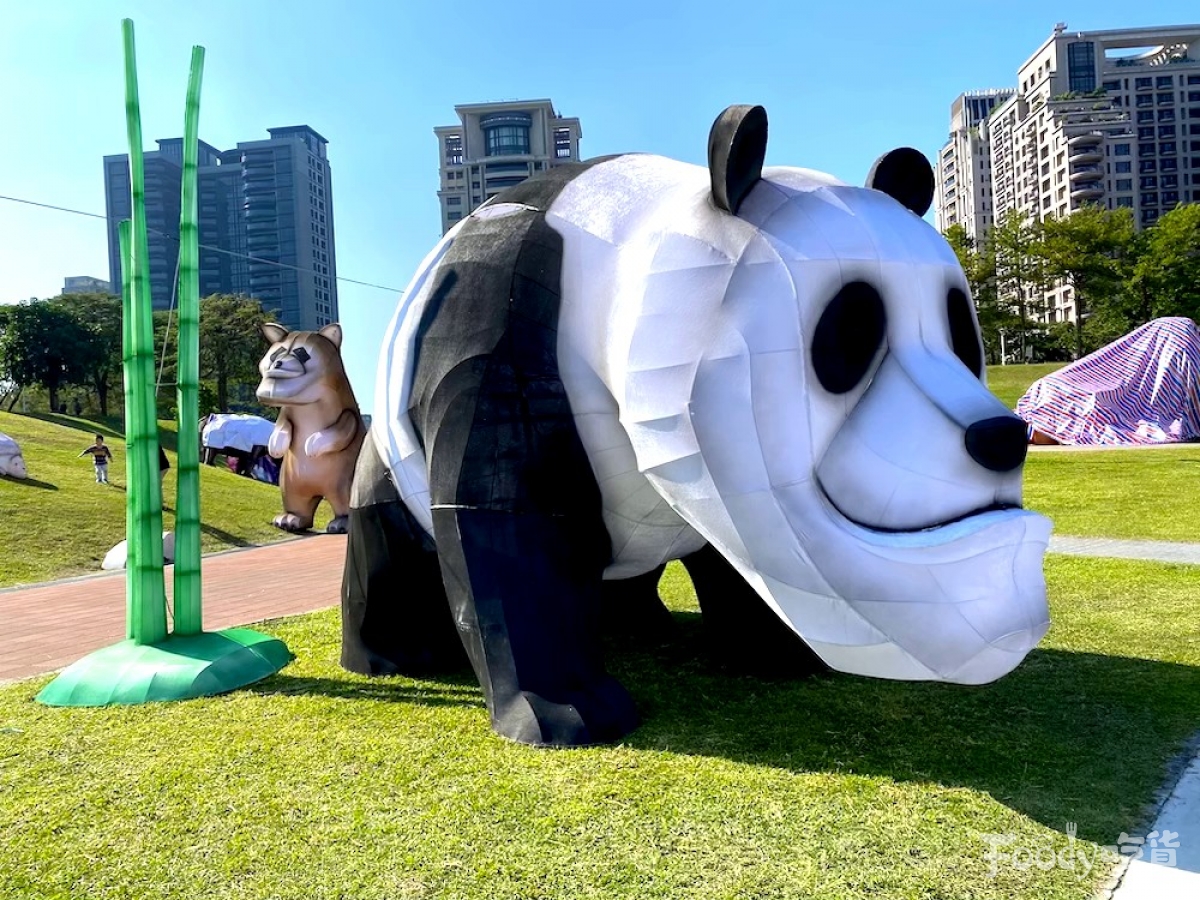 ▼文心公園正中央就是國際明星燈區,搭配主舞台,會有大貓熊、浣熊、鯨魚、海龜等草原或海洋代表生物登場。有些則還在蓋帆布準備中~