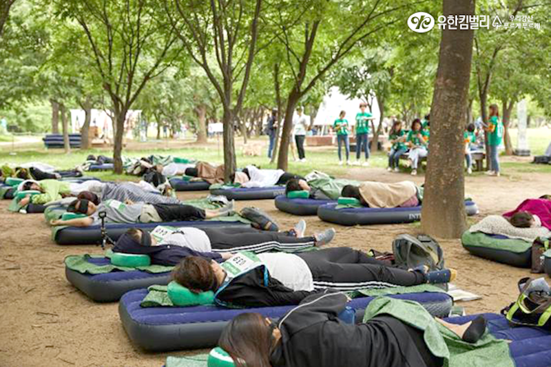 ▼韓國「甜睡大賽」由柳韓金百利(Yuhan Kimberly)舉辦,今年已邁入第四屆。比賽地點在首爾森林公園,規則也很簡單,只要睡的最久最甜,就能獲得第一名獎金50萬韓元(約12880台幣)!