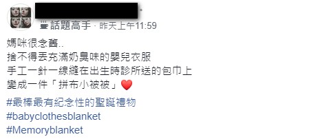 媽媽不捨丟「奶臭味」嬰兒服 一出手做出「拼布小被被」充滿愛