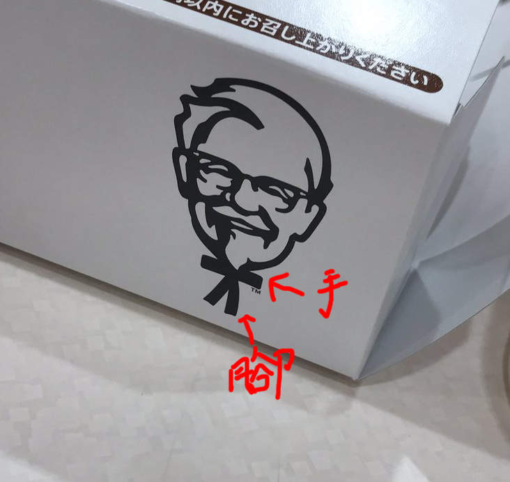 高校のころ、友人の『カーネルおじさんのリボンが手足にしか見えない』という一言から、それにしか見えなくなった呪いにかかってしまったので、これを見た全員かかってしまえばいい。 pic.twitter.com/BFbi19DEDK