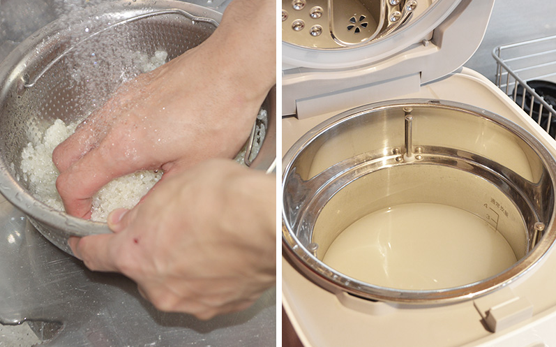 ▼將洗好的米放在內鍋裡,再把煮米水放在外鍋裡,煮飯時米飯中的糖份就會溶在水中,白飯的碳水化合物含量就能減少。