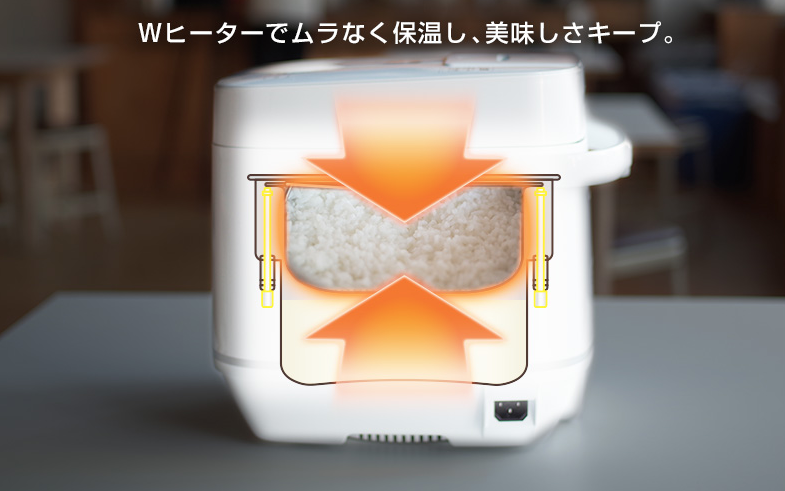 ▼電鍋裝有雙加熱器,飯煮好後自動切換到保溫功能,能夠保持內部溫度恆定長達24小時,將美味鎖在鍋裡~