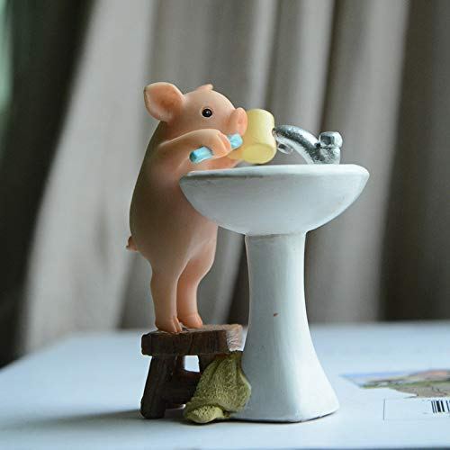 ▼刷牙豬:愛吃的豬豬很懂得保護牙齒,因為腿比較短,刷牙時要踩在小凳子上才行。