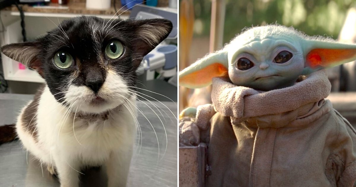 長超像「尤達寶寶」的浪喵獲救 獸醫都被牠的「直升機耳朵」萌倒啦