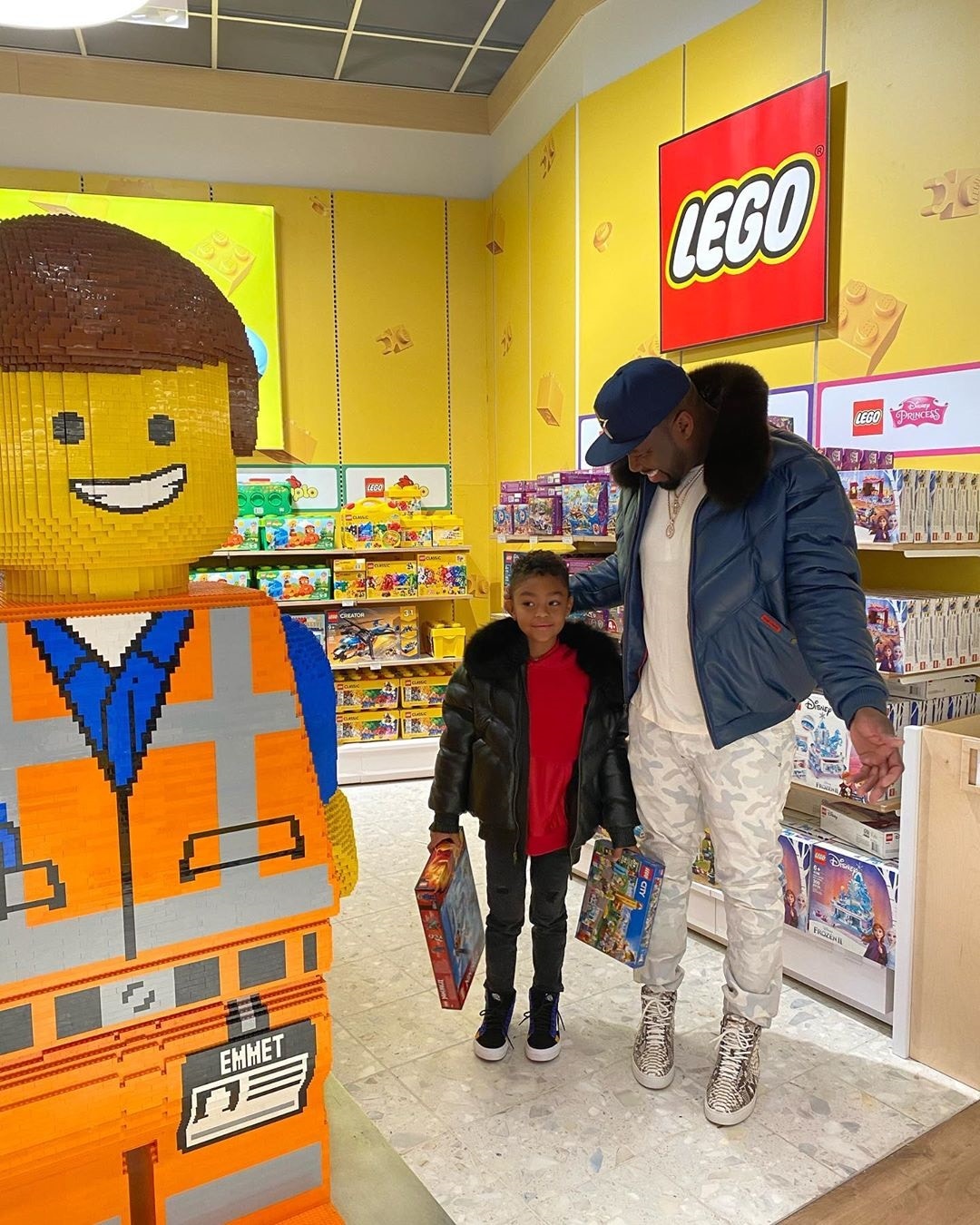 ▼玩具反斗城裡貼滿了Sire的圖片和名字。50 Cent和兒子一起,拿著玩具、樂高積木等等,玩得非常開心。
