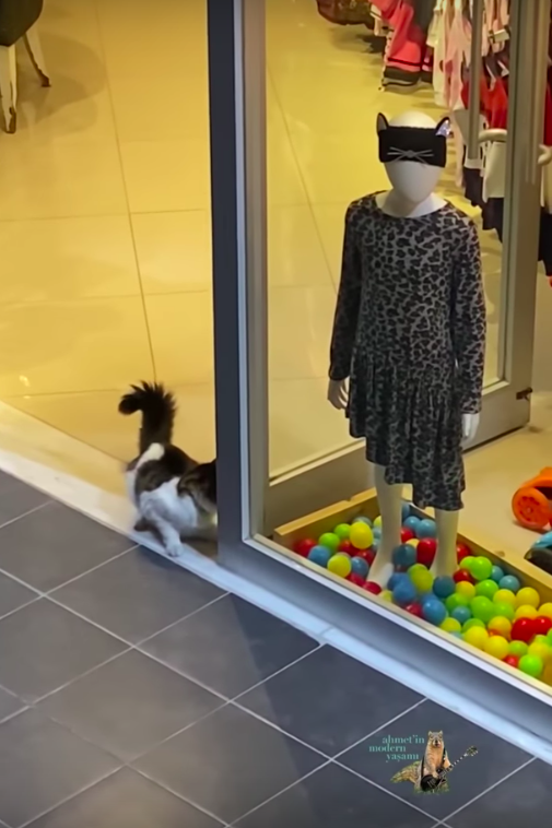 2020年06月17日貓咪太可愛啦!土耳其網友Ahmet Selki是一位動物愛好者,他在伊斯坦堡(Istanbul)的街頭看到了超有愛的一幕。一隻貓咪在服裝店門口徘徊,吸引牠的不是櫥窗中的衣服,而是裝飾用的彩色小球~