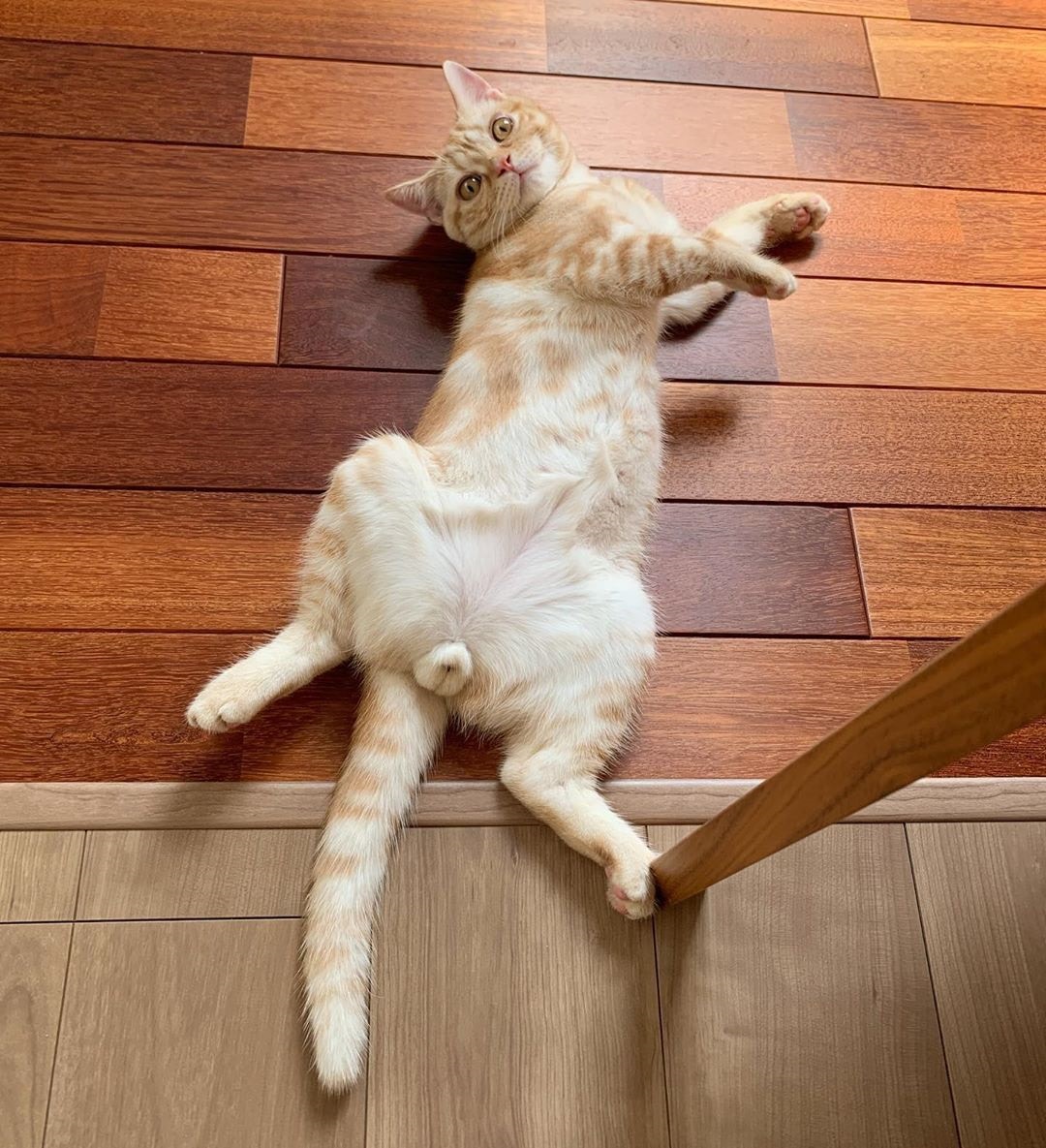 ▼在主人的寵愛下,這隻貓咪每天都過得很舒服。牠平時也懶洋洋的,能躺著絕對不坐著。