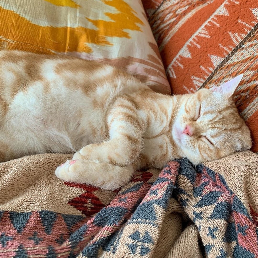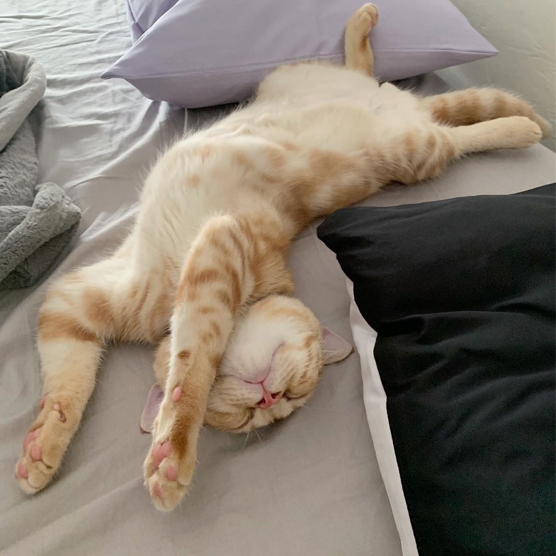 主人幫忙按摩時,貓咪舒服到睡著的模樣好可愛。主人也很專業,從爪爪到肩頸,連耳朵都按了,服務很周到啊~