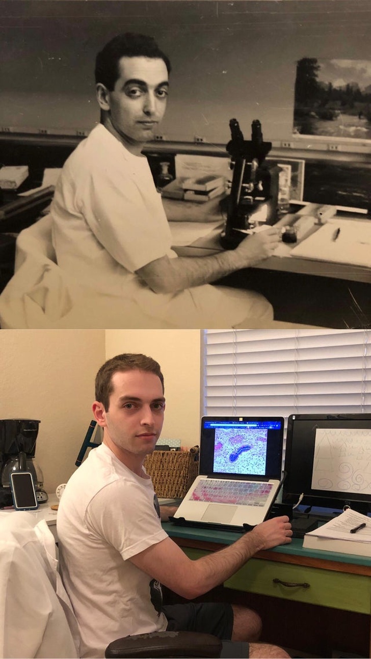 ▼我和祖父在醫學院中的日子,照片的拍攝時間相隔了70年!