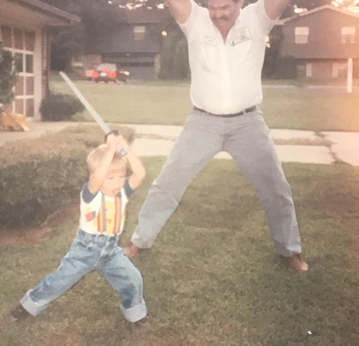 ▼1987年,當時3歲的我與爺爺一起練習劍術!