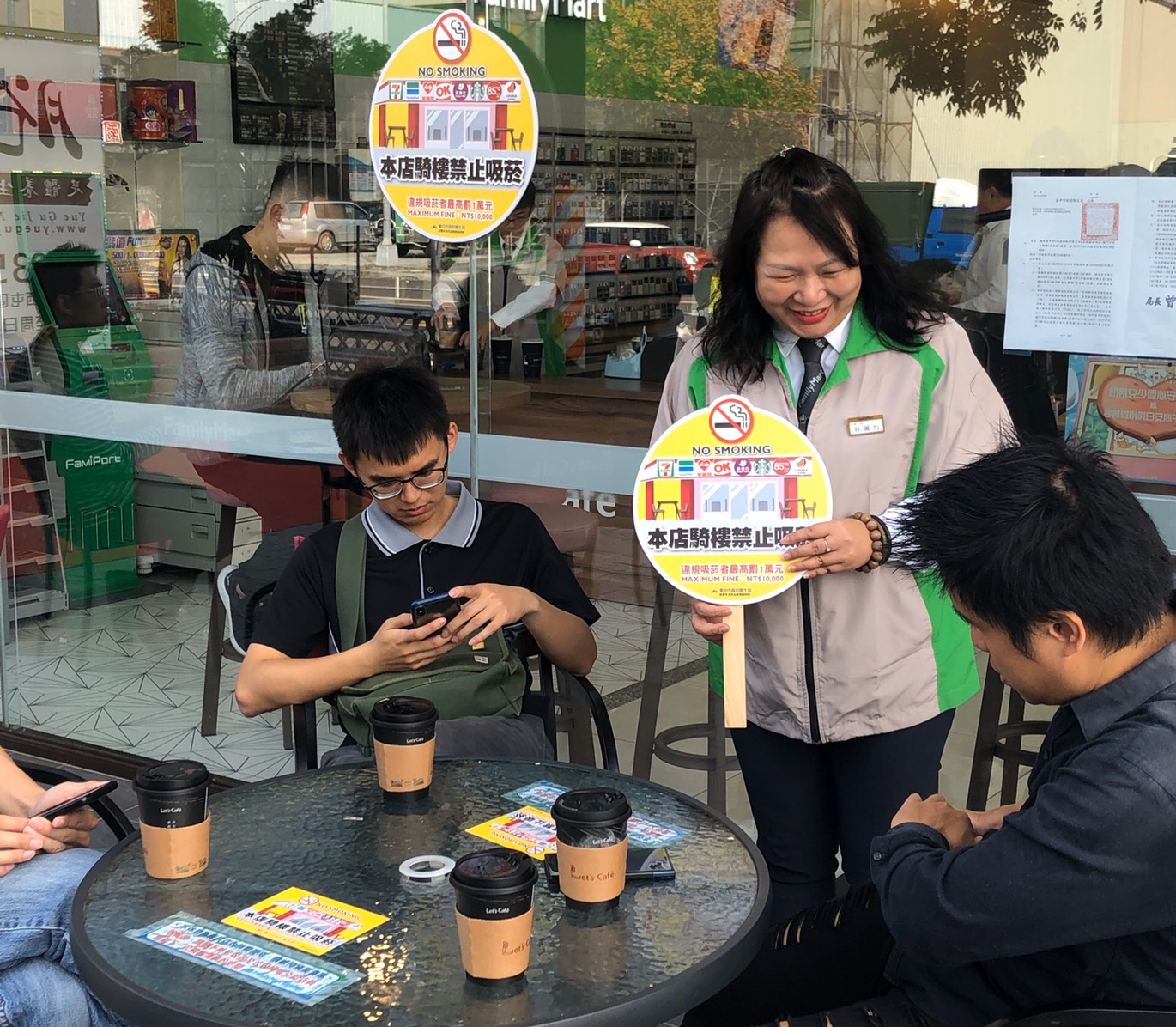 ▼台中市在2015年就以及將全市400座公車候車亭列為禁菸區,並在2016年創下全台之先,與四大超商合作在66家店面的騎樓禁止吸菸。2019年11月,台中市也宣佈擴大禁菸的範圍,除了四大超商以外,連鎖咖啡店(星巴克、路易莎、85度C)等近1,400家店騎樓及庇廊都實行全面禁菸。