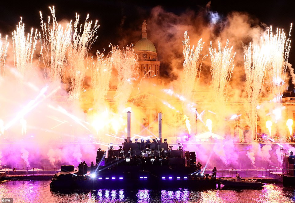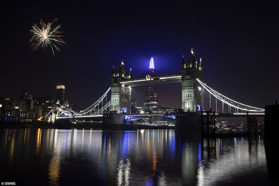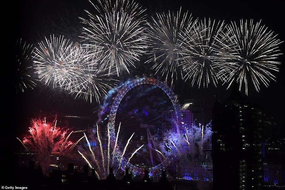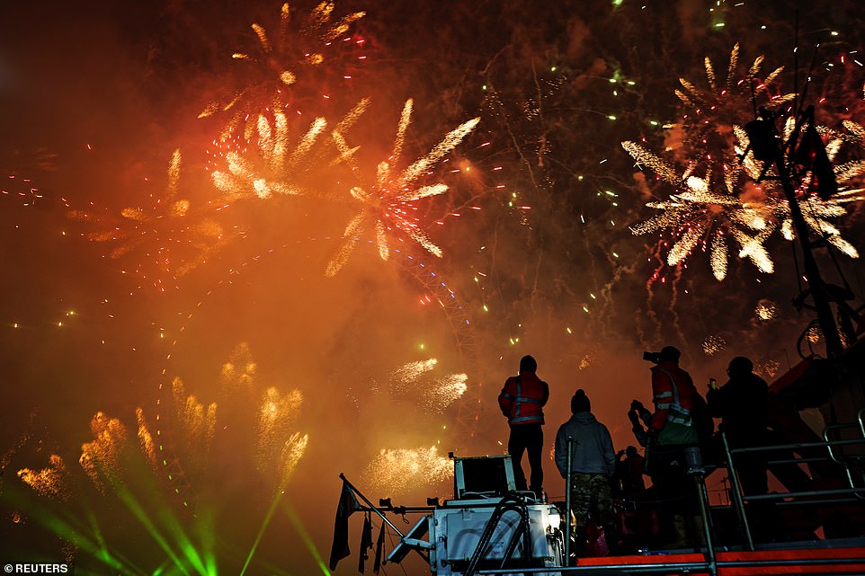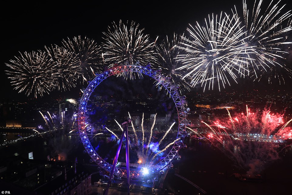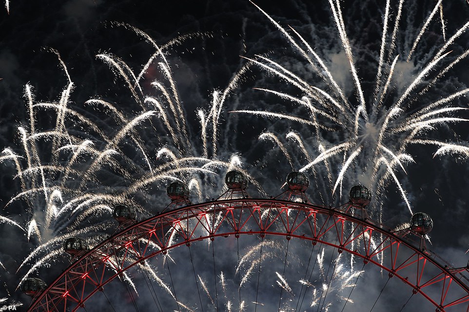 ▼倫敦的煙花在英格蘭足球隊歌《Three Lions》、歌手Stormzy、Wiley和樂團Bastille的音樂中發射,其中2,000枚從倫敦眼發射,其餘的煙花則沿着泰晤士河發射。
