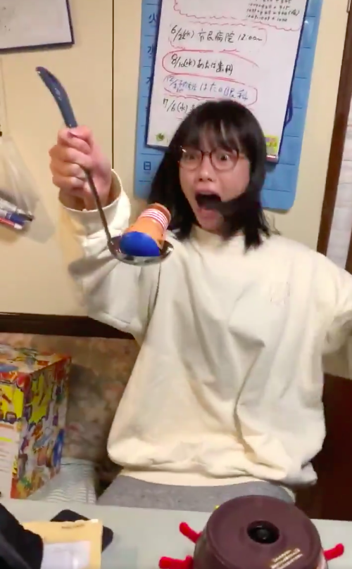 ▼作為女團成員,佐倉ちひろ平時很注意表情管理,但海盜跳進匙子裡的一刻,她驚訝又興奮,簡直要跳起來,那誇張的反應超好笑。